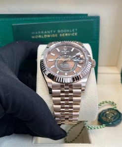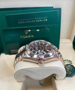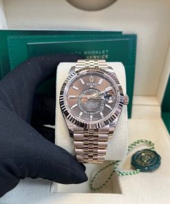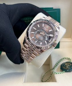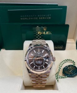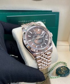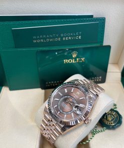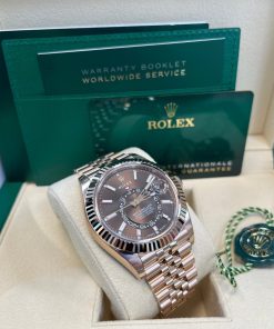 42mm 18K Everose gold case, screw-down back, screw-down crown with twinlock double waterproofness system, fluted, bidirectional rotatable rolex ring command bezel, scratch-resistant sapphire crystal with cyclops lens over the date, chocolate dial, 9002, manufacture Rolex perpetual self-winding, dual time zones, annual calendar movement with, approximately 72 hours of power reserve, Jubilee bracelet with five-piece links, folding Oysterclasp buckle with Easylink 5mm comfort extension link. Waterproof to 100 metres / 330 feet.