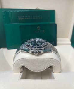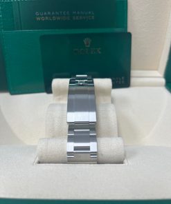 It is equipped with an Oysterlock clasp, which prevents accidental opening, and an ingenious Glidelock, allowing fine adjustments of the bracelet without using any tools — and allowing it to be worn comfortably over a diving suit.
