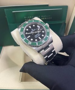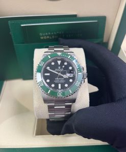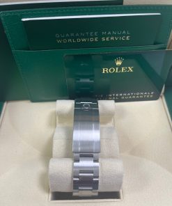 It is equipped with an Oysterlock clasp, which prevents accidental opening, and an ingenious Glidelock, allowing fine adjustments of the bracelet without using any tools — and allowing it to be worn comfortably over a diving suit.