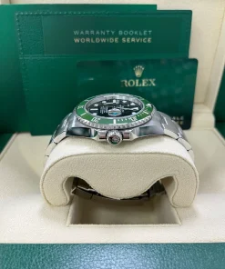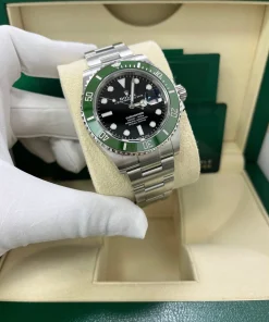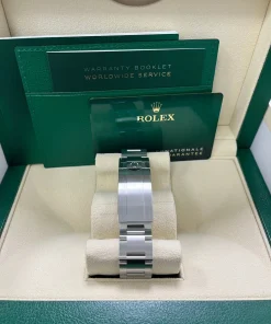 It is equipped with an Oysterlock clasp, which prevents accidental opening, and an ingenious Glidelock, allowing fine adjustments of the bracelet without using any tools — and allowing it to be worn comfortably over a diving suit.