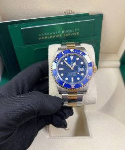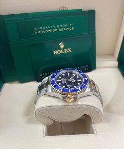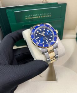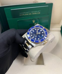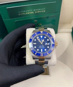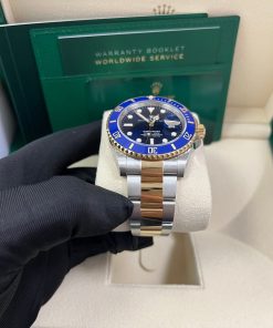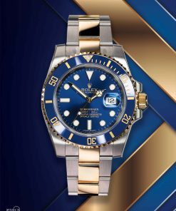 The Oyster Perpetual Submariner Date in Oystersteel and yellow gold with a Cerachrom bezel insert in blue ceramic and a royal blue dial with large luminescent hour markers.