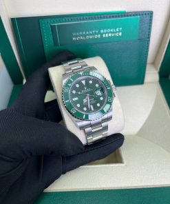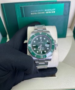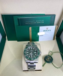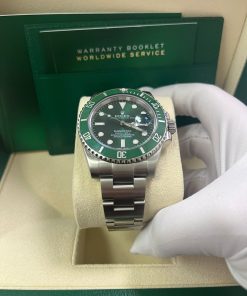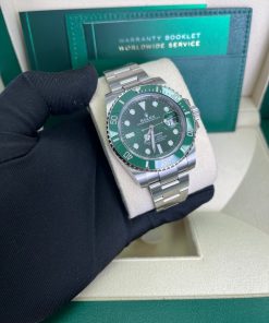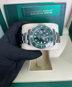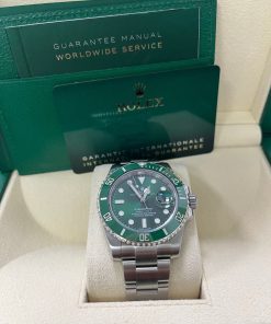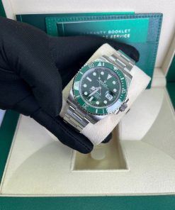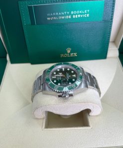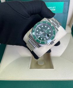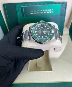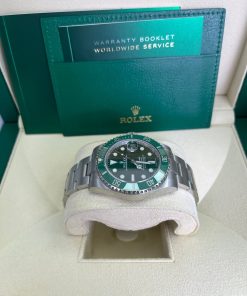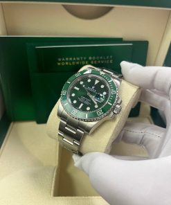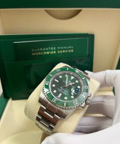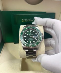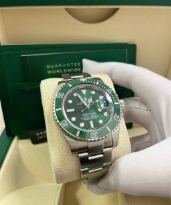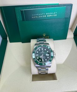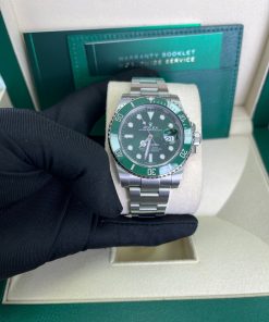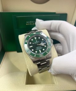 40mm 904L stainless steel case, unidirectional rotatable green Cerachrom time lapse bezel, green Hulk dial, Chromalight luminescent hands and hour markers, and Oyster Glidelock bracelet. Water resistant to 1000 feet. New design introduced at Baselworld 2010. New features include redesigned 904L steel case and virtually scratch proof Cerachom bezel.