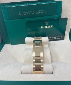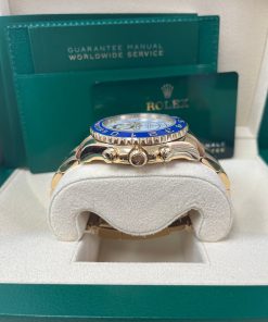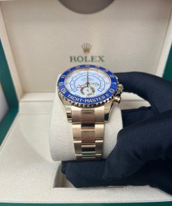 44mm 18K yellow gold case, 90 degree rotatable blue ceramic Ring Command bezel, white dial, automatic movement with programmable countdown function, and Oysterlock bracelet.