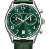 At the center is a guilloché dial, available in green, blue, copper, or black. The texture catches the light nicely, while a smooth outer ring hosts applied indexes with subtle lume. The cathedral-style hour and minute hands give the watch a vintage touch, and the red-tipped seconds hand adds just the right amount of contrast. The layout is symmetrical and easy to read without feeling plain.