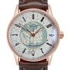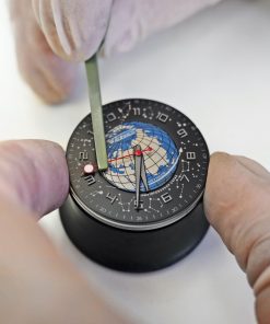 Beneath its classic façade and subtle design lies a revolutionary idea: time should flow in tune with the counterclockwise dance of the planets in our solar system. Take note that the second hand, featuring the Moon, also traces an unconventional path around the central Earth on the watch’s face.