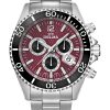 The bezel, crafted from brown anodized aluminum, offers a unidirectional rotation, is comfortable to use, and boasts scratch resistance. Guaranteed to be water-resistant up to 200 m/660 ft and paired with a sturdy stainless steel band, the Santiago Chronograph ensures maximum comfort and broad appreciation.