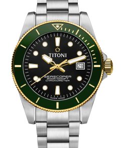 The Seascoper 300 remains a serious diver’s tool. Rated for 300 meters of water resistance, it boasts a robust 42mm stainless steel case, sapphire crystal with anti-reflective coating, and a SW200-1 movement, COSC-certified for accuracy. Titoni’s commitment to craftsmanship is clear, with each piece tested in-house. It’s a perfect balance of style and substance—an elegant yet capable timepiece ready for adventure.