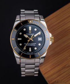 The Seascoper 300 remains a serious diver’s tool. Rated for 300 meters of water resistance, it boasts a robust 42mm stainless steel case, sapphire crystal with anti-reflective coating, and a SW200-1 movement, COSC-certified for accuracy. Titoni’s commitment to craftsmanship is clear, with each piece tested in-house. It’s a perfect balance of style and substance—an elegant yet capable timepiece ready for adventure.