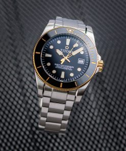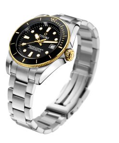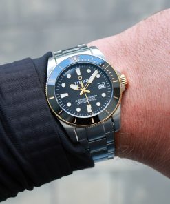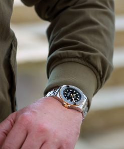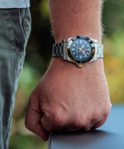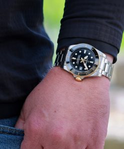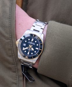 The new Titoni Seascoper 300 Bicolor blends rugged dive watch performance with a refined, sophisticated design, a balance that will appeal to the discerning enthusiast. Under the stewardship of Marc and Olivier Schluep, the fourth generation of Titoni’s founding family, the Seascoper 300 has been reimagined with an elegant flair. The Seascoper 300’s golden Luminova-filled hands and black lacquered dial stand out at first glance, while the textured ceramic bezel, available in a trio of color options, offers both beauty and function. There’s also a choice between two bracelet designs, one featuring gold-plated center links and one in stainless steel.
