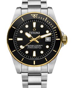 The Seascoper 300 remains a serious diver’s tool. Rated for 300 meters of water resistance, it boasts a robust 42mm stainless steel case, sapphire crystal with anti-reflective coating, and a SW200-1 movement, COSC-certified for accuracy. Titoni’s commitment to craftsmanship is clear, with each piece tested in-house. It’s a perfect balance of style and substance—an elegant yet capable timepiece ready for adventure.