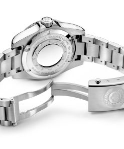 A subtle yet striking detail lies in the mirror-like surface of the case back, reminiscent of a porthole. The folding clasp, bearing the hallmark plum blossom logo, ensures easy and secure bracelet extension, adding to the convenience and quality of every TITONI watch.