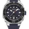 The watch comes in a 39 x 40.50mm steel case in three versions. One features an anthracite dial paired with an integrated steel bracelet, while the other two have sportier options: a navy blue dial with a matching rubber strap or a black dial with an orange flange and matching rubber strap. All models are certified dive watches, water-resistant to 300m.