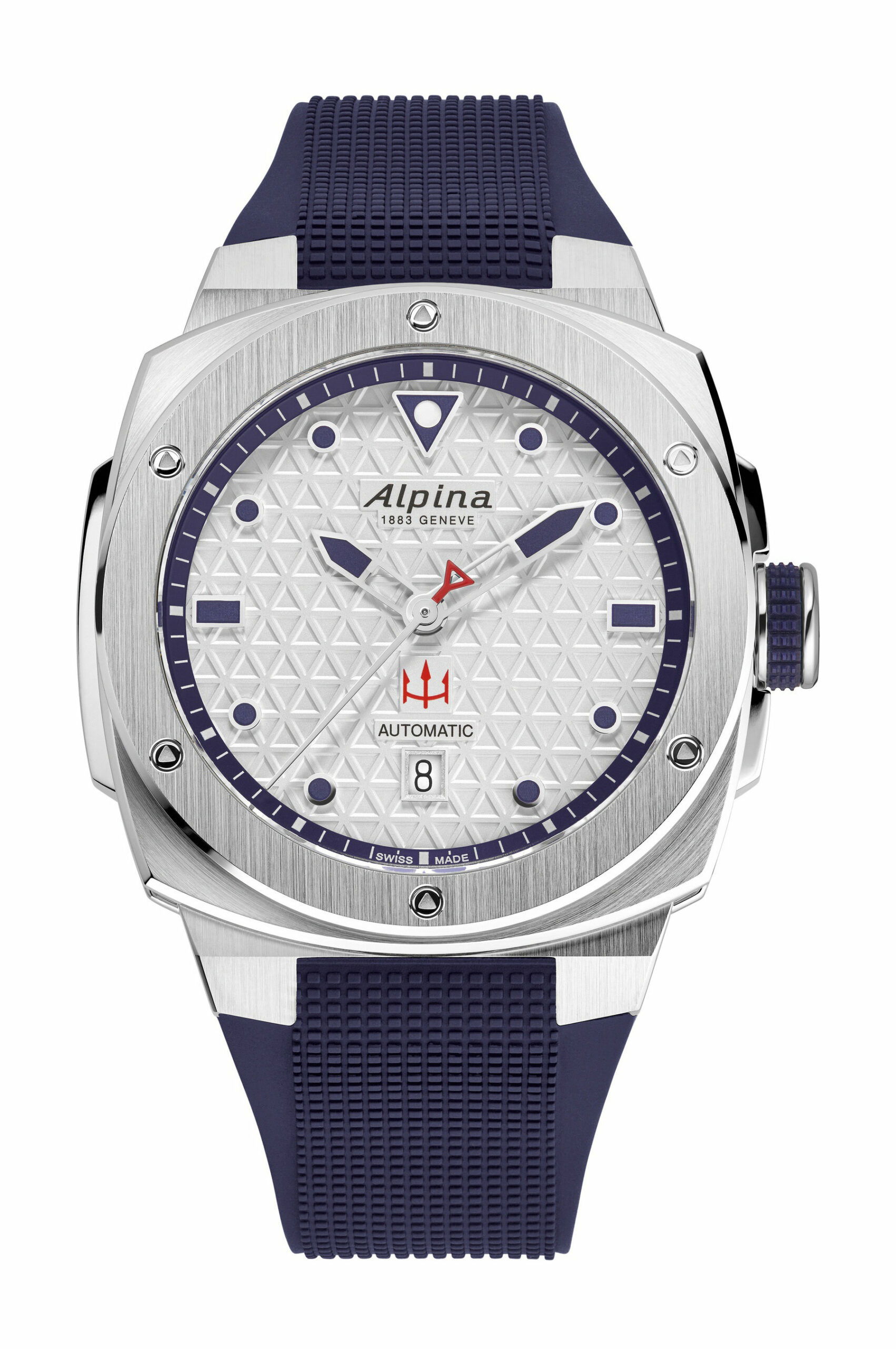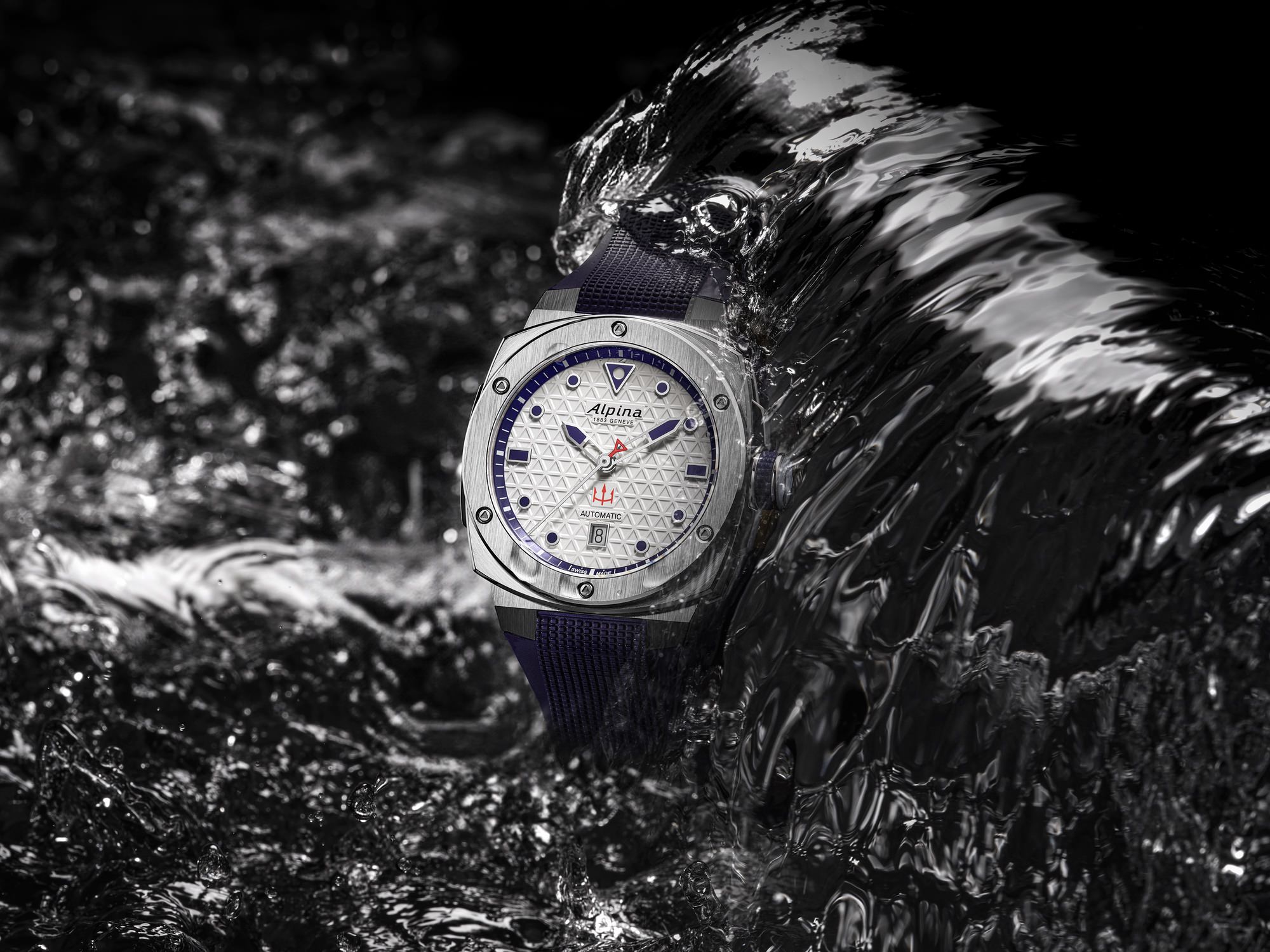 As the Official Timekeeper, Alpina showcases these watches with a 41-millimeter steel case available on both steel and rubber straps. The designs reflect nautical themes with a choice of a silvered dial suggestive of sea spray or a deep blue dial. Only 100 and 150 pieces are available for each edition, respectively, featuring the Swiss Made AL-525 automatic movement with a 38-hour power reserve.