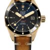 The SECURICODE Diver 300 Steel features a guilloché brass dial in a stainless steel case with a brushed-finish bezel and an expansion band powered by the SW200-1 automatic movement. The Steel/Ceramic version adds a date display at 3 o’clock and a scratch-resistant ceramic bezel paired with a retro Tropic rubber strap. The limited edition Diver 300 Bronze/Ceramic celebrates the collection with a forged bronze case, Super-LumiNova® eggshell hands, and a vintage leather strap.