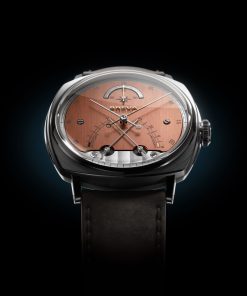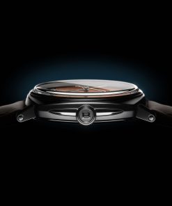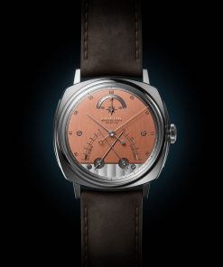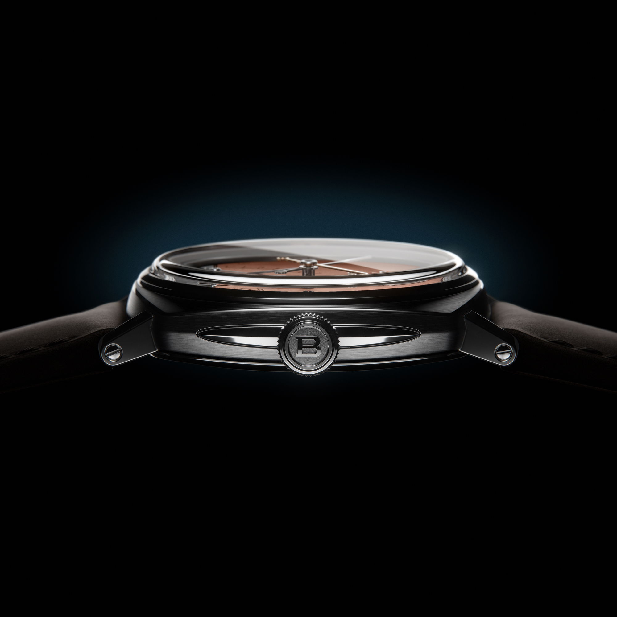 Its copper-toned dial captures the glow of late afternoon, rich and reflective, never loud. The 42 mm titanium case offers a modern lightness, while the soft taupe suede strap, handcrafted in Italy, brings comfort and understated charm. Every detail feels considered and effortless—just like an evening spent lakeside.