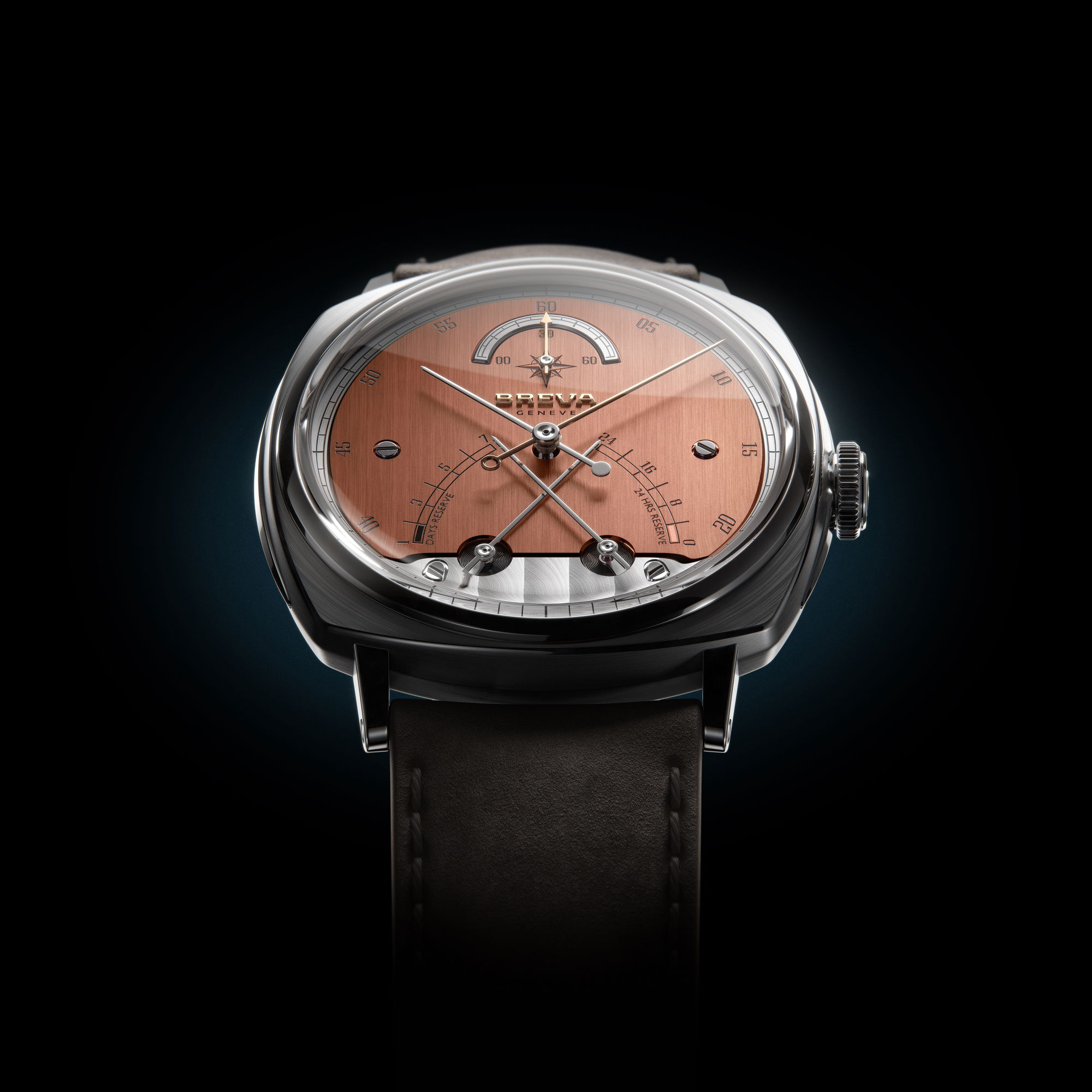 Inside, things get technical. A bespoke hand-wound movement, developed by Jean-François Mojon and his independent manufacture Chronode, powers a rare triple-retrograde display and a 7-day power reserve. BREVA’s unique dual-scale gauge lets you read the time remaining with precision—even down to the final 24 hours.