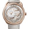 The Slim d’Hermès Cheval brossé is a poetic dance of precision and artistry. With a case in white gold, its dial unveils a dreamlike scene: a stylized horse, depicted in striking pad-printed colors, standing against an blue enamel sky. This exquisite composition, envisioned by designer Dimitri Rybaltchenko, embodies Hermès’ 2025 theme, Drawn to Craft—an ode to the maison’s ceaseless pursuit of wonder.