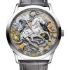 Dominating the celestial scene is a silver horse, detailed through a process that includes abrasion dyeing before application. Its sculpted form captures light with remarkable dimensionality. Set at the center of the dial, the horse’s chest is marked with slender hour and minute hands powered by the H1950 self-winding movement, all in a white gold case. Finished with an alligator leather strap that reflects Hermès’ leather expertise, this model is limited to just 24 pieces.