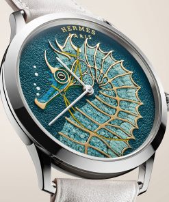 The result sits within a 39.5 mm white gold case housing the ultra slim H1950 self winding movement, visible through a sapphire caseback that reveals its refined finishes and signature H motif. A béton or perle Swift calfskin strap underscores Hermès leather expertise, completing two vivid interpretations offered in numbered editions of only twenty four pieces.