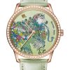 Originally designed by Philippe Delhotal in 2015, the Slim d’Hermès is known for its clean geometry and quiet elegance. Here, it becomes a stage for nature’s theatre: a lion crowned by the sun for summer, a horse garlanded in autumn blooms, a wolf dusted with winter frost, and an eagle with leafy wings heralding spring. Each creature, drawn from Pierre Marie’s Le Sacre des saisons silk design, celebrates Hermès’ flair for narrative whimsy.