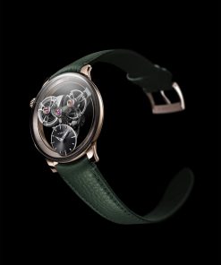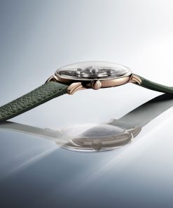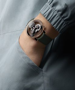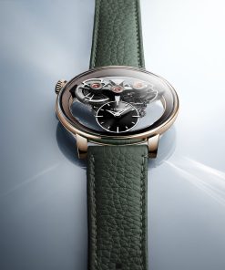 The movement itself is a lesson in restraint. Elements are suspended to evoke weightlessness, their equal diameters and tight spatial choreography creating both harmony and challenge for the engineers. Traditional hand-finishing techniques and a focus on minimal visible components heighten the illusion. The pebble-shaped 38mm case wraps this architecture in a smooth, bezel-free shell. Lugs are separated from the upper case, furthering the sensation of lightness and sculptural clarity. The watch doesn’t flatten itself for thinness accolades; instead, it embraces compactness with quiet poise.