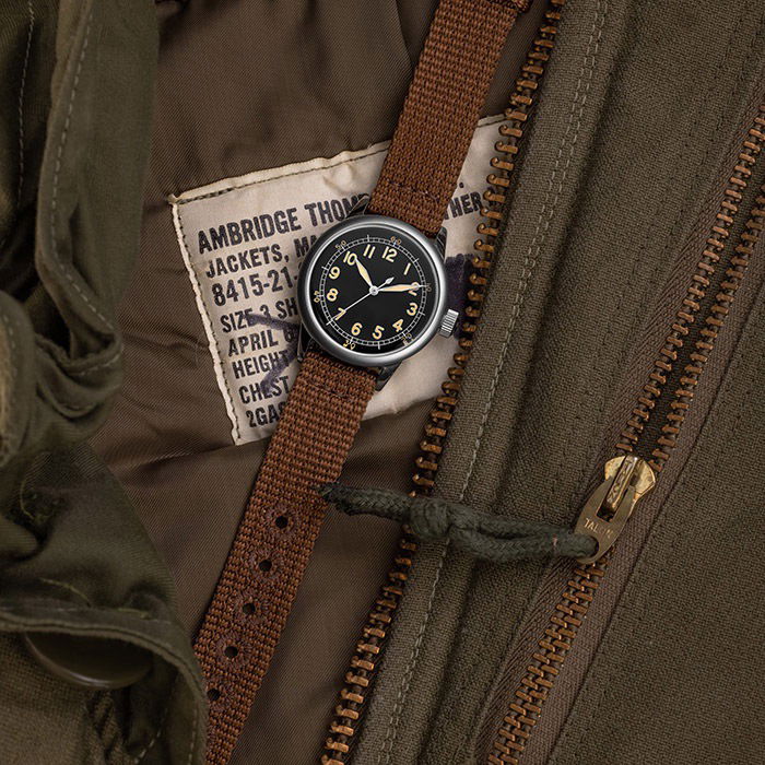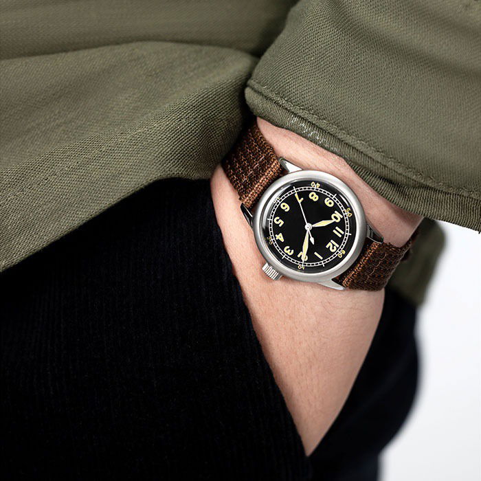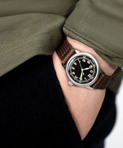 Combining the collection’s most authentic dial with a “modern” Nylon strap, the “Original Nylon” blends vintage and contemporary elements. The factory-fresh A-11 look from 1942 retains its vintage, no-frills design. The Nylon strap complements the field watch aesthetics while adding a modern touch, similar to what you’d find on today’s field watches.