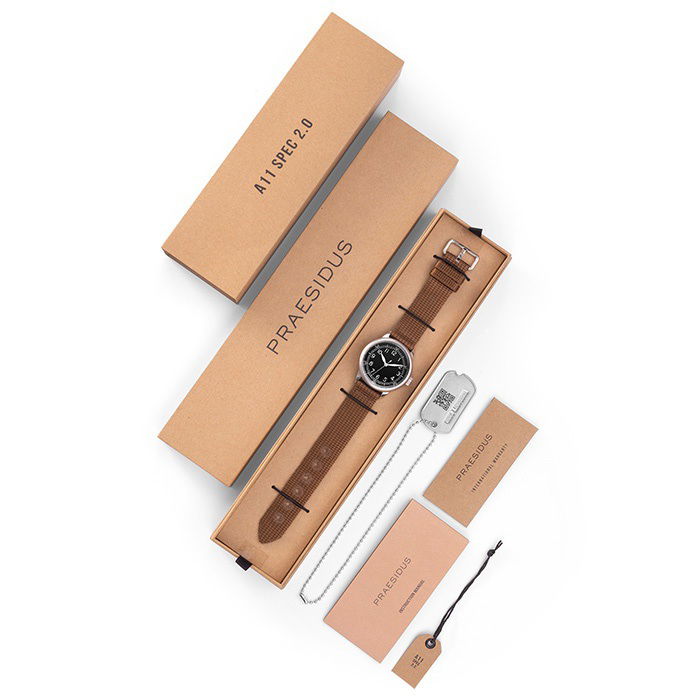 The case is available in either a 32mm or in a 40mm size. The main case body is sandblasted to eliminate any gloss, in true field watch fashion. However, as a nod to the original shiny chrome plating found on most A-11s, the lugs are polished.