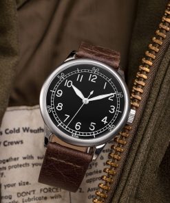 The brown leather strap balances the field watch look, giving the watch a more versatile appeal. It is suitable for both rugged environments and situations requiring a touch of elegance.