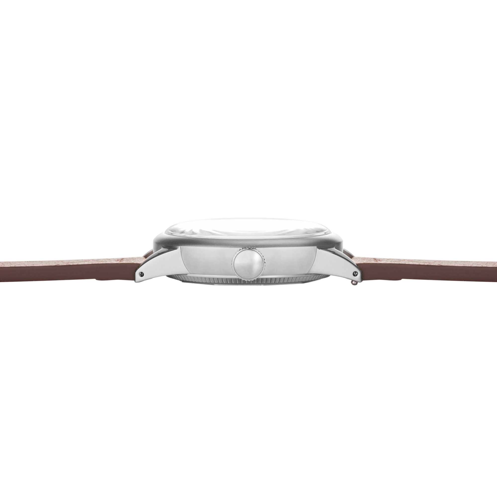 The Brown Leather strap enhances the field watch look, tying the watch together as an elegant interpretation of what a field watch should be. It is suitable for both rugged environments and situations requiring a touch of elegance.