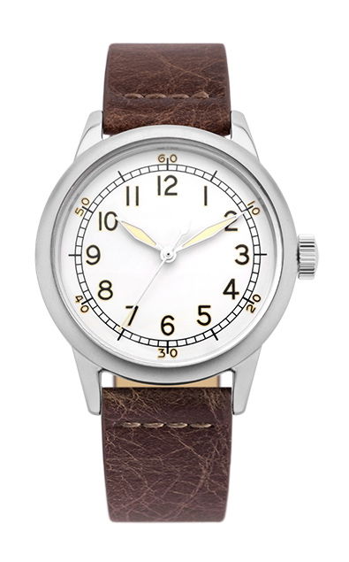 The most innovative take on the original A-11 Spec, the “White Patina Leather” ventures into new territory. It maintains the field watch and vintage look while the white dial brings a more subdued feel.