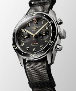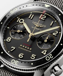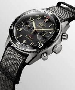 The LONGINES SPIRIT FLYBACK is a new addition to the brand’s pilot’s watch line, featuring a titanium case certified by COSC. It pays homage to Longines’ pioneering history in flyback chronographs, dating back to 1925. The watch combines a lightweight and durable Grade 5 titanium case with a bold 42mm design, blending dark shades with subtle shine. It is powered by the Longines L791.4 calibre, known for its precision, resistance to magnetic fields, and a 68-hour power reserve. The watch boasts a bidirectional rotating bezel with a black ceramic insert, a luminous anthracite dial, and Super-LumiNova®-coated hands and numerals for legibility. Water-resistant up to 100 meters, it comes with either an interchangeable titanium bracelet or a black and grey NATO strap designed specifically for this model.