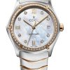 Women’s EBEL Sport Classic watch, stainless steel and 18K yellow gold case Ø 33mm, green mother-of-pearl dial with applied Roman numerals and 8 diamonds (0.052ct), sapphire crystal with antireflective treatment underneath, two-tone stainless steel wave link bracelet with a folding clasp, Swiss quartz movement, water-resistant up to 5 bar