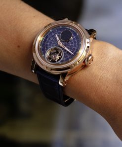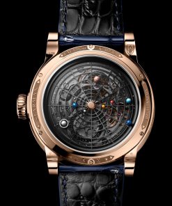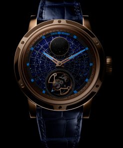 STARMAN’s watchmaking brilliance is highlighted by its off-center flying tourbillon, which defies gravity and adds a dynamic elegance. The watch’s hand-wound movement boasts two barrels working in parallel, a unique “volte face” system that ensures a 96-hour power reserve. Made from 18-carat gold, the case is a bold blend of brushed and polished finishes, accentuated by a sophisticated stepped bezel.