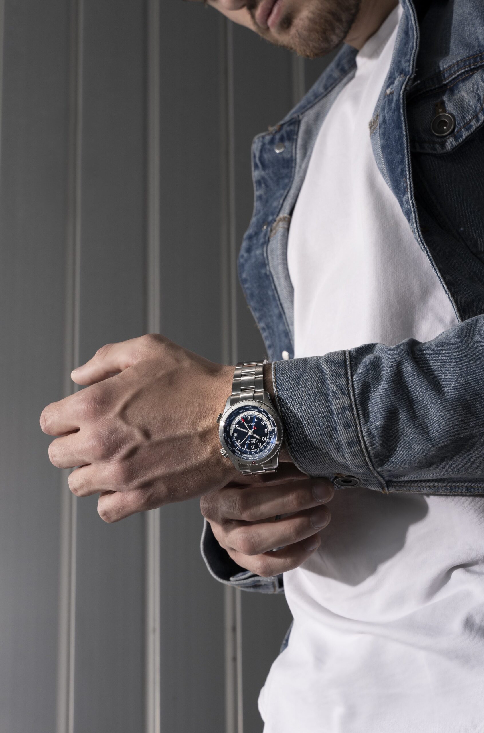 Originally designed as a tribute to aviation pioneers, the Startimer collection now speaks to the modern adventurer. It started with a three-hand version and later added chronograph, date, and large date complications. The latest addition, the Worldtimer, fits neatly into the updated 41mm case design introduced in 2021. The dial is designed for readability, featuring luminous Arabic numerals, hands, and a distinctive sector dial reminiscent of vintage pilot watches.