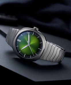 The Streamliner Centre Seconds Matrix Green, known as the “Green Dragon,” is making its much-anticipated return, accompanied by a new “Purple Haze” dial version. Originally released in 2020 and quickly gaining iconic status, H. Moser & Cie. paused orders to enhance its aesthetic and technical features. Updates include a transparent lacquer logo and the new self-winding calibre HMC 201.