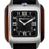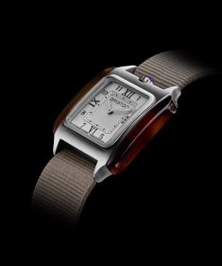 The Streamliner Kennedy Medium offers a balanced take on Briston’s new square design, tailored for smaller wrists while preserving the architecture of the larger models. Measuring 30 millimeters, the case blends polished steel and tortoiseshell acetate side panels for a subtle contrast of materials. The crown is positioned at 12 o’clock and set with a lapis lazuli cabochon, a signature touch across the collection. The dial features a double-layer structure with stamped Roman or Arabic numerals, a guilloché-finished center, and a railway-style minute track that frames the design with precision.