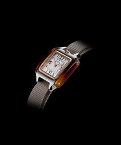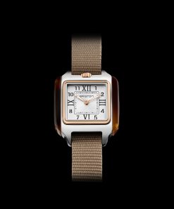 The smallest in the new collection, the Streamliner Kennedy Small is designed as a compact, elegant piece that doubles as a refined accessory. With a 25-millimeter square case, it maintains the signature Briston design elements: tortoiseshell acetate flanks, polished steel finishing, and the 12 o’clock crown topped with lapis lazuli. Despite its size, the watch features the same sophisticated dial structure found in the rest of the range, including stamped numerals, a guilloché center, and a clean railway-style track that enhances legibility and texture.