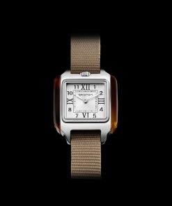 The smallest in the new collection, the Streamliner Kennedy Small is designed as a compact, elegant piece that doubles as a refined accessory. With a 25-millimeter square case, it maintains the signature Briston design elements: tortoiseshell acetate flanks, polished steel finishing, and the 12 o’clock crown topped with lapis lazuli. Despite its size, the watch features the same sophisticated dial structure found in the rest of the range, including stamped numerals, a guilloché center, and a clean railway-style track that enhances legibility and texture.