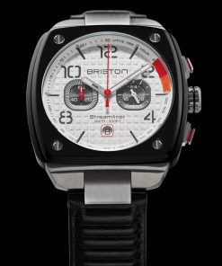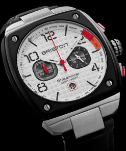 Briston expands its Streamliner URBAN collection with the Gentleman Drivers series, a set of chronographs rooted in motorsport heritage and urban styling. The 42 mm case fuses round and square shapes to form a bold identity, in the brand’s signature tortoiseshell cellulose acetate. Its tonneau-cambered bezel with four screws and octagonal pushers featuring red or orange inserts evoke racing hardware, while the 100-meter water resistance keeps it ready for city or track.