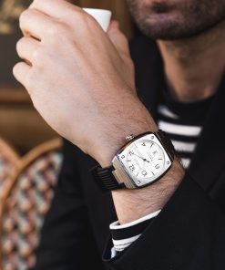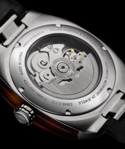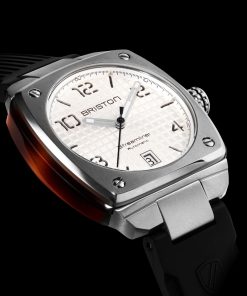 Briston’s Streamliner Urban Automatic quietly refines the brand’s design language with a case that blends tonneau curves and integrated lines. The visible screws on the bezel remain, a subtle nod to functionality, while the tortoiseshell acetate case is balanced by brushed and polished surfaces. Inside, the NH35 automatic movement offers a practical 41-hour power reserve and can be seen through the transparent case back, complete with a rotor finished in Côte de Genève.