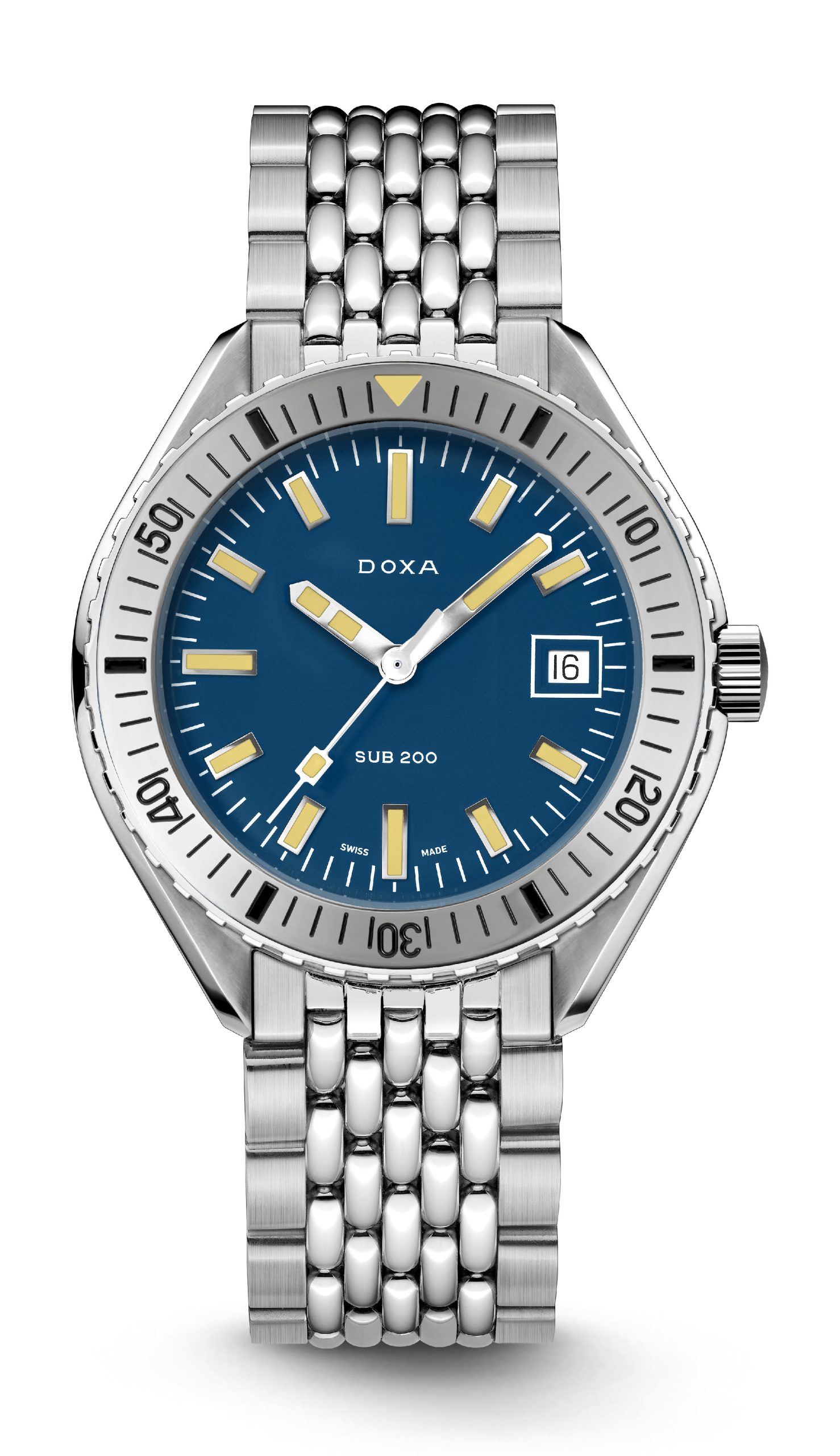 Available across all eight signature DOXA colorways, the new SUB 200 arrives on rubber, classic beads-of-rice stainless steel, or a NATO strap (exclusively for the Sea Emerald edition).