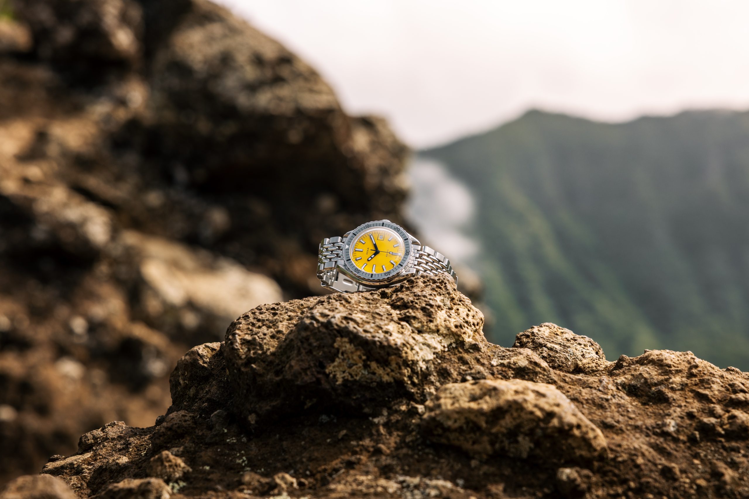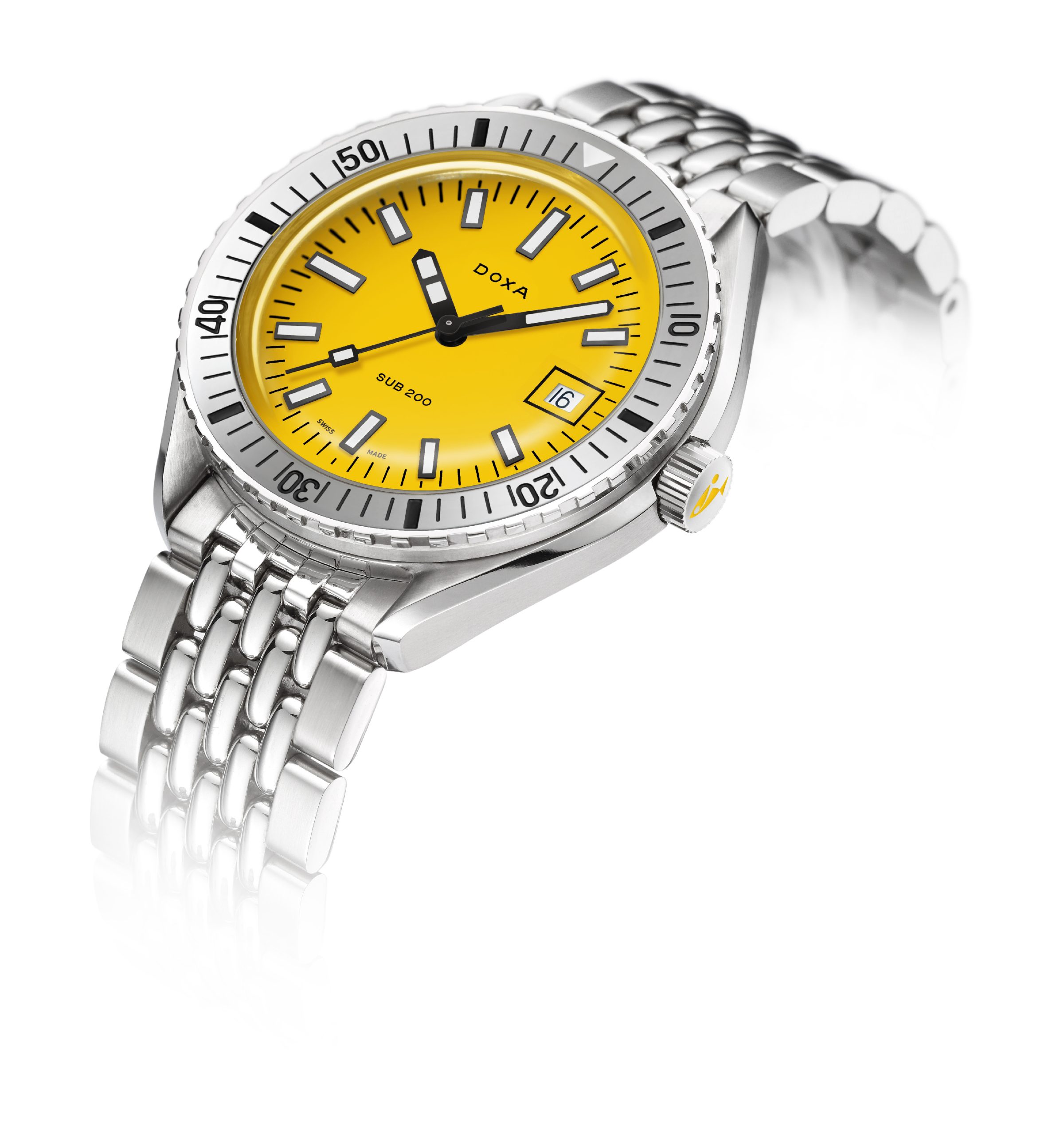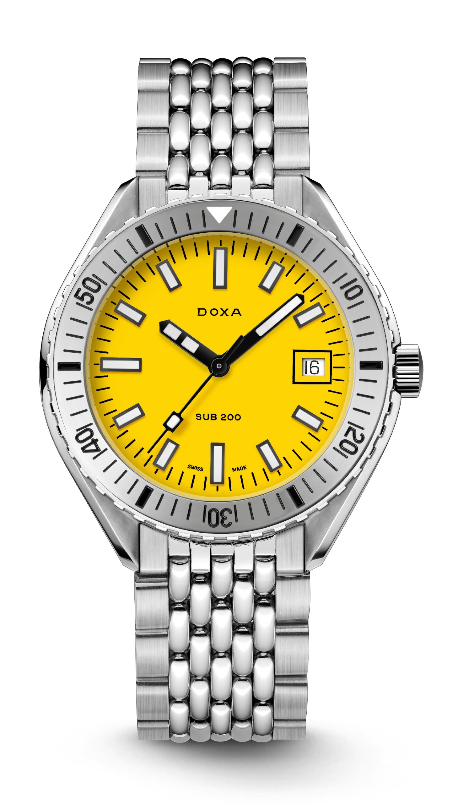 Available across all eight signature DOXA colorways, the new SUB 200 arrives on rubber, classic beads-of-rice stainless steel, or a NATO strap (exclusively for the Sea Emerald edition).