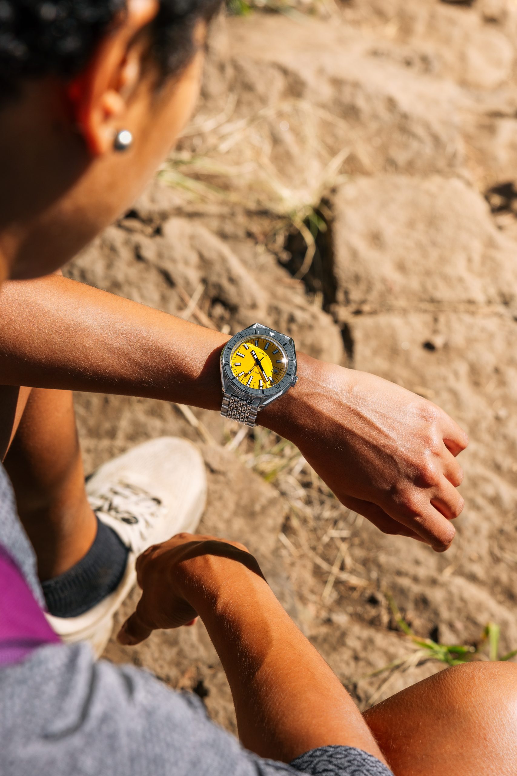 The polished steel insert creates a contrast to the sapphire-bezel versions still offered in the lineup, widening the SUB 200’s appeal without diluting its core DNA. The steel brings a sense of clarity and lightness, clean in appearance, but no less capable beneath the surface. It also frames the dial with a contemporary sharpness that leans easily into both daily wear and casual coastal settings.