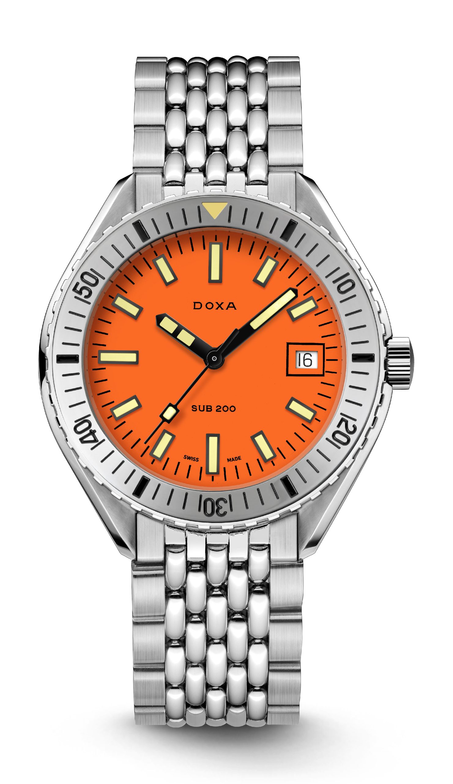 Available across all eight signature DOXA colorways, the new SUB 200 arrives on rubber, classic beads-of-rice stainless steel, or a NATO strap (exclusively for the Sea Emerald edition).