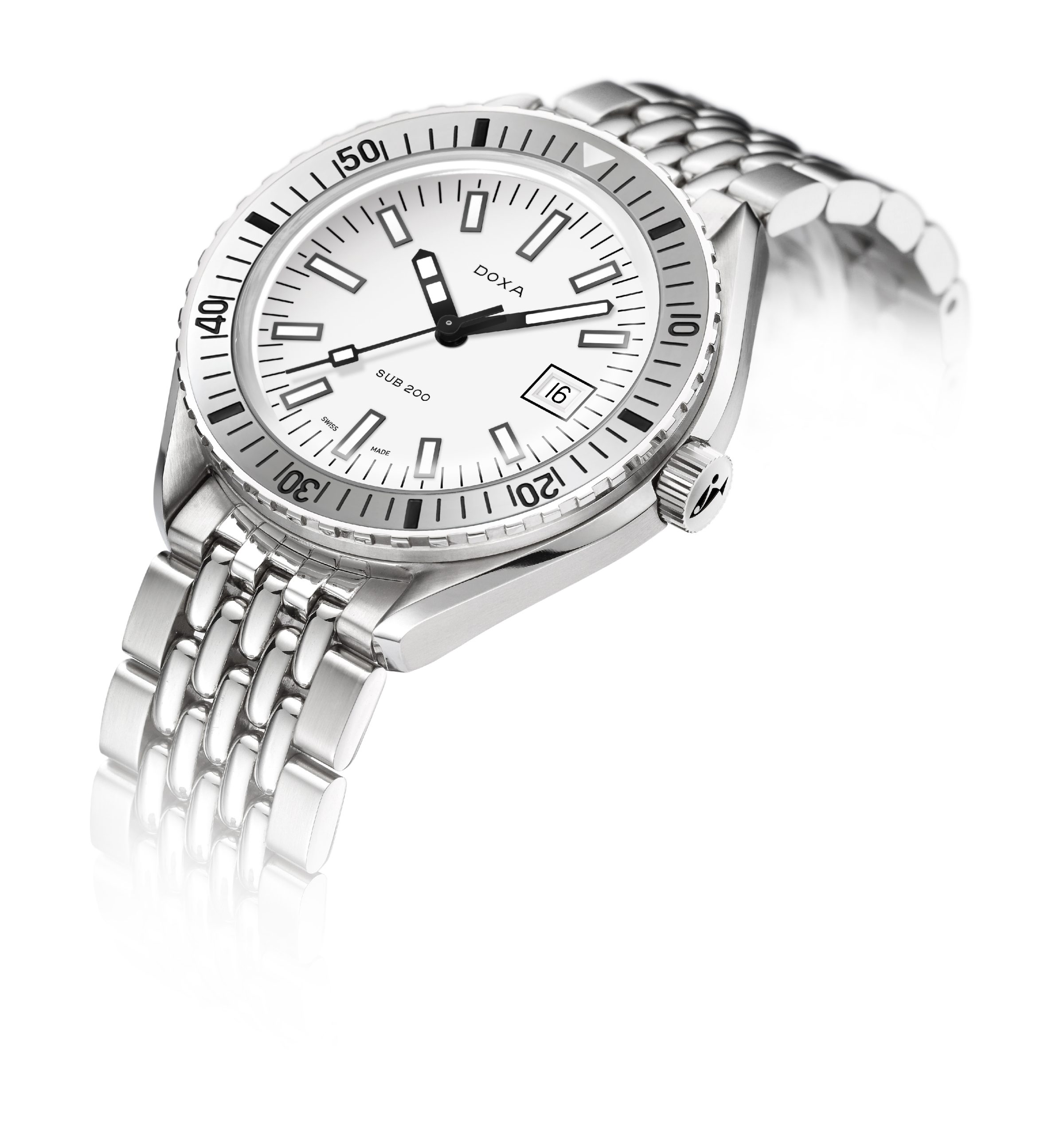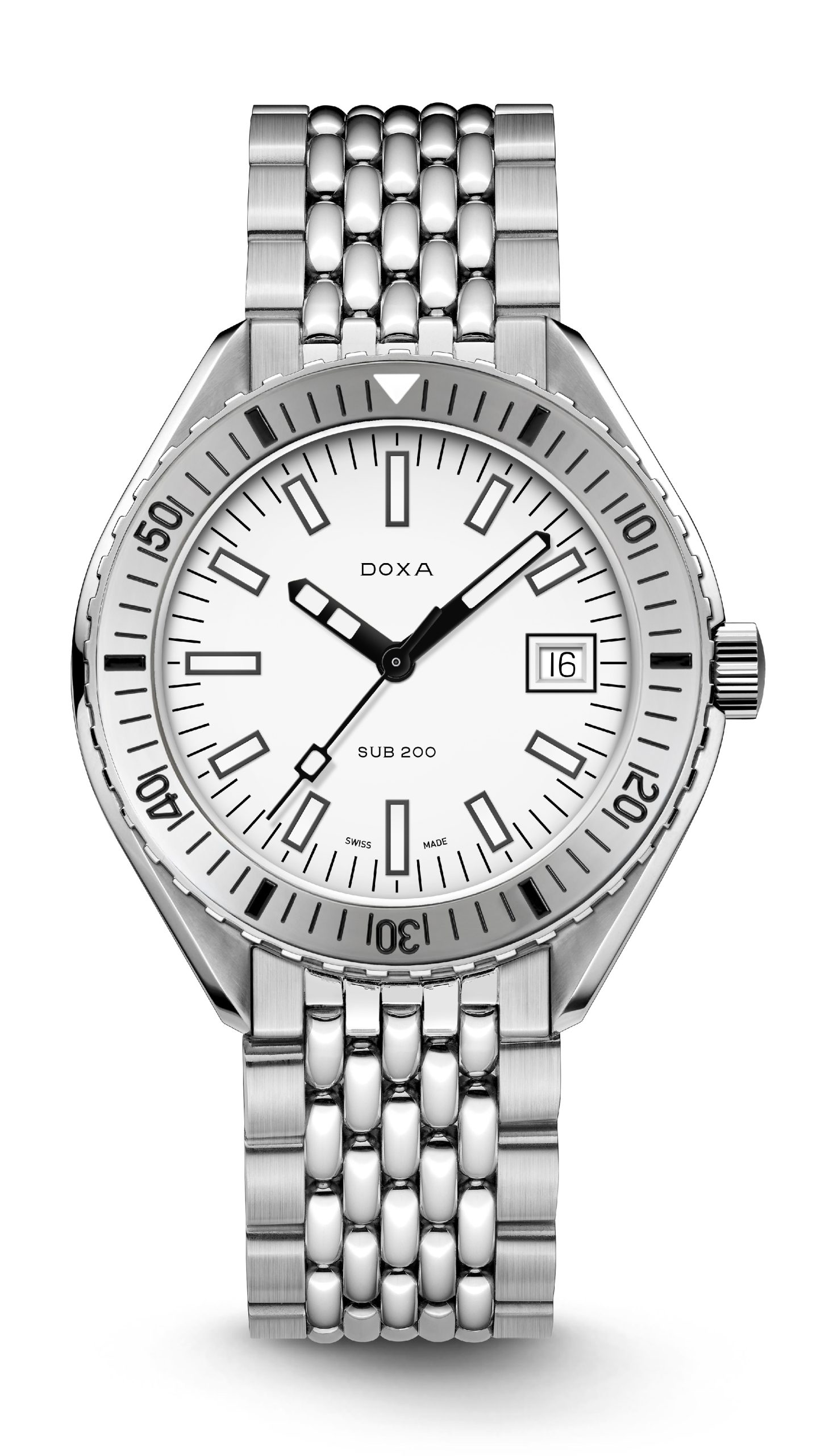 Available across all eight signature DOXA colorways, the new SUB 200 arrives on rubber, classic beads-of-rice stainless steel, or a NATO strap (exclusively for the Sea Emerald edition).