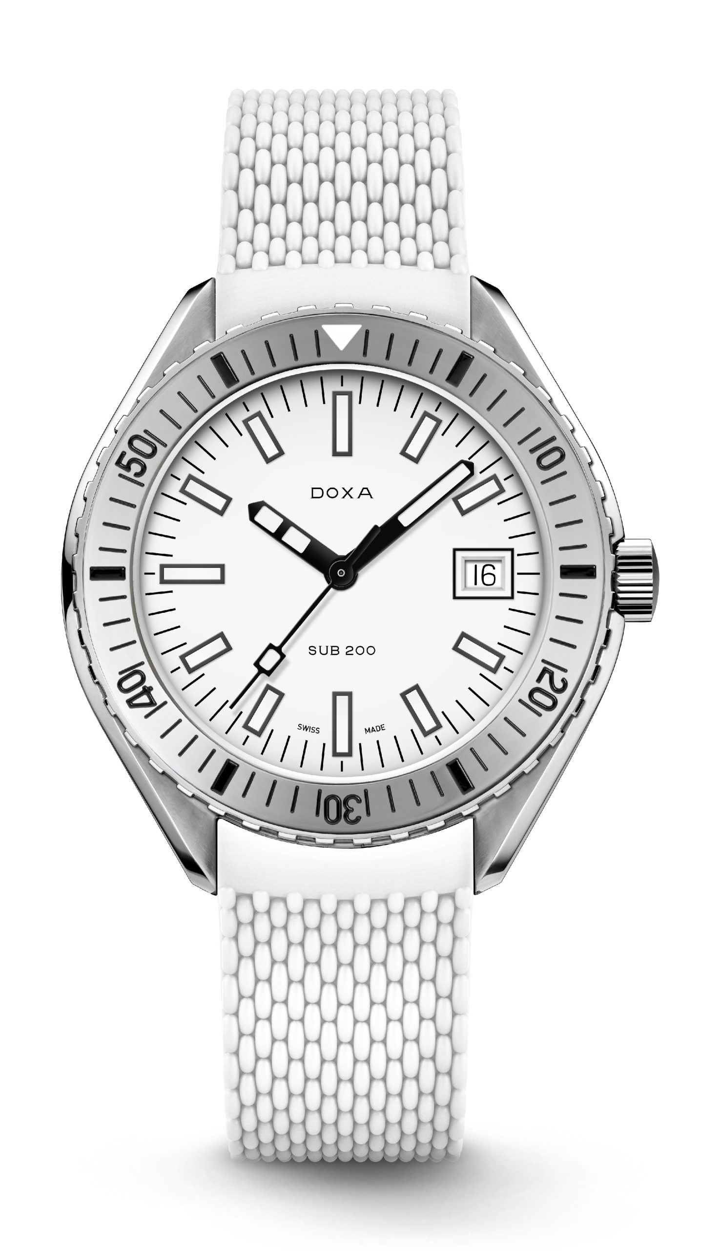 Available across all eight signature DOXA colorways, the new SUB 200 arrives on rubber, classic beads-of-rice stainless steel, or a NATO strap (exclusively for the Sea Emerald edition).