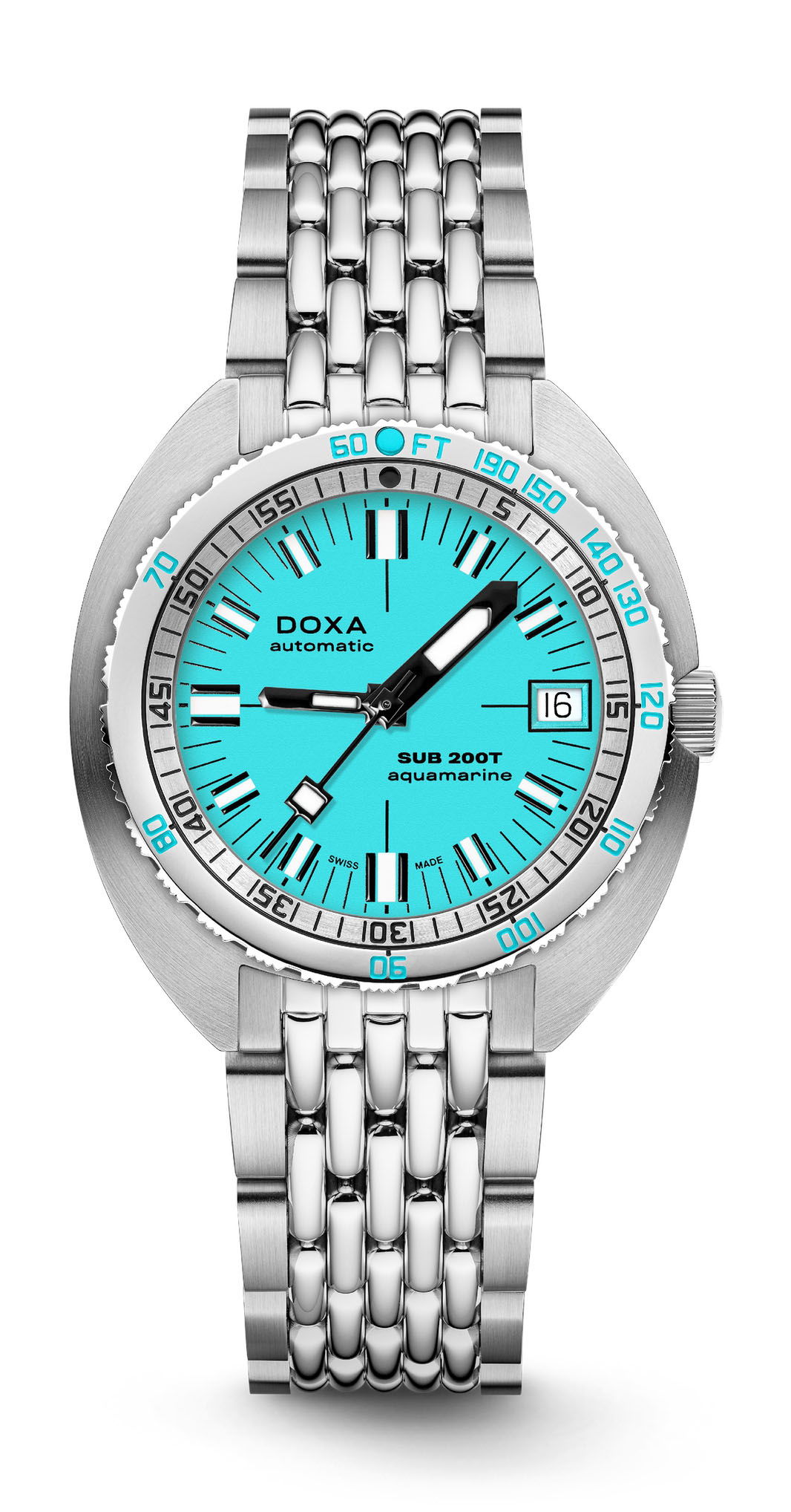 The DOXA SUB 200T marks a significant addition to the brand’s lineup, offering a diverse range of options. It features eight vibrant colors, two dial options (iconic or sunray), and a choice between a rubber strap or stainless steel ‘beads of rice’ bracelet. Notably, it introduces a smaller 39 mm stainless steel case, catering to the growing demand for compact diving watches while maintaining the technical excellence synonymous with DOXA since 1967.
