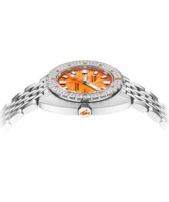 The DOXA SUB 200T Diamonds watches have been redesigned with a compact 39mm stainless steel case, a Swiss automatic movement, and a 200-meter water resistance. The mother-of-pearl dials add a bespoke touch, as no two are alike, and the luminescent Super-LumiNova® ensures readability in all conditions. DOXA’s signature ‘beads of rice’ bracelet complete the look, combining rugged durability with sophistication.