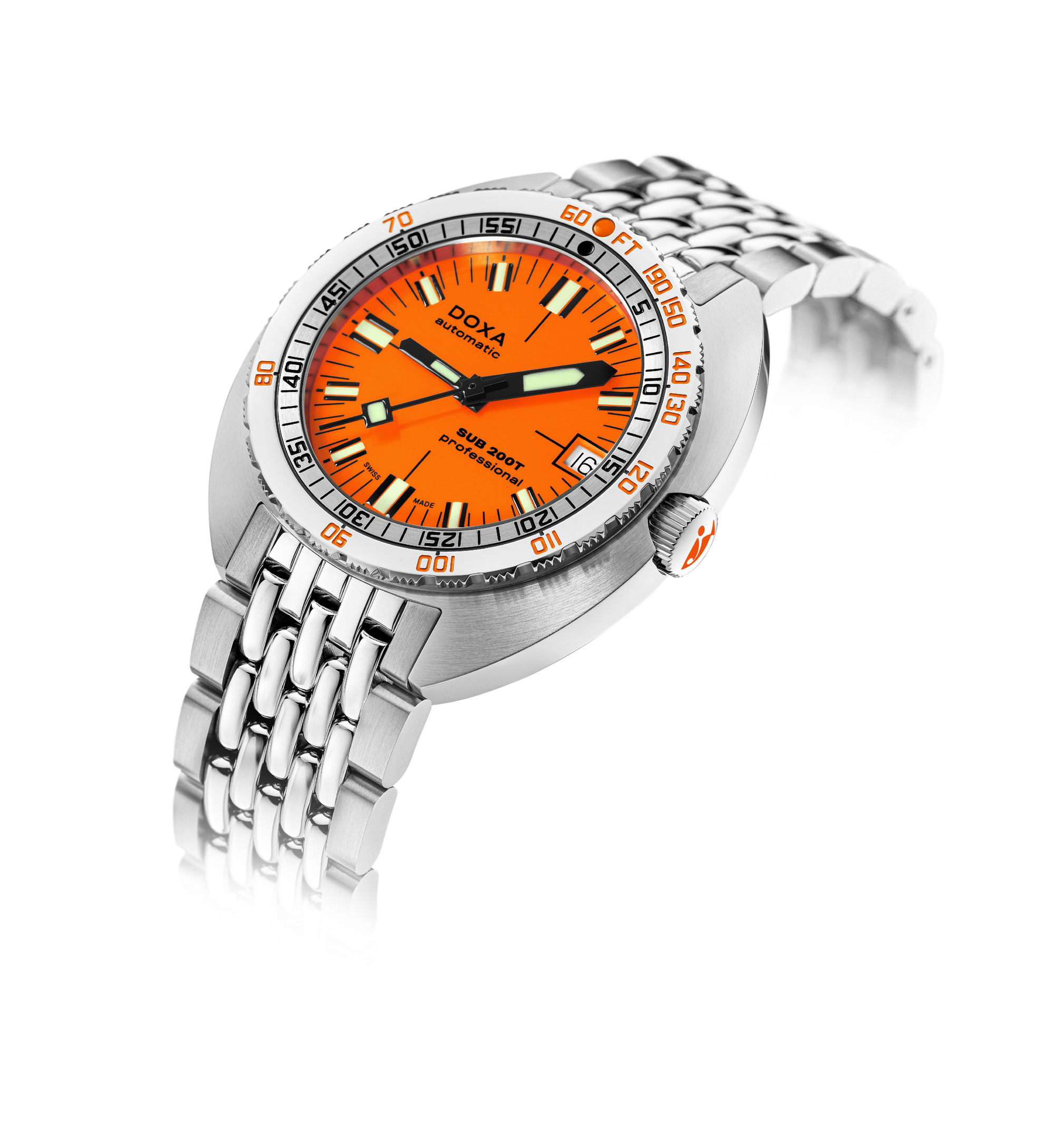 The DOXA SUB 200T marks a significant addition to the brand’s lineup, offering a diverse range of options. It features eight vibrant colors, two dial options (iconic or sunray), and a choice between a rubber strap or stainless steel ‘beads of rice’ bracelet. Notably, it introduces a smaller 39 mm stainless steel case, catering to the growing demand for compact diving watches while maintaining the technical excellence synonymous with DOXA since 1967.