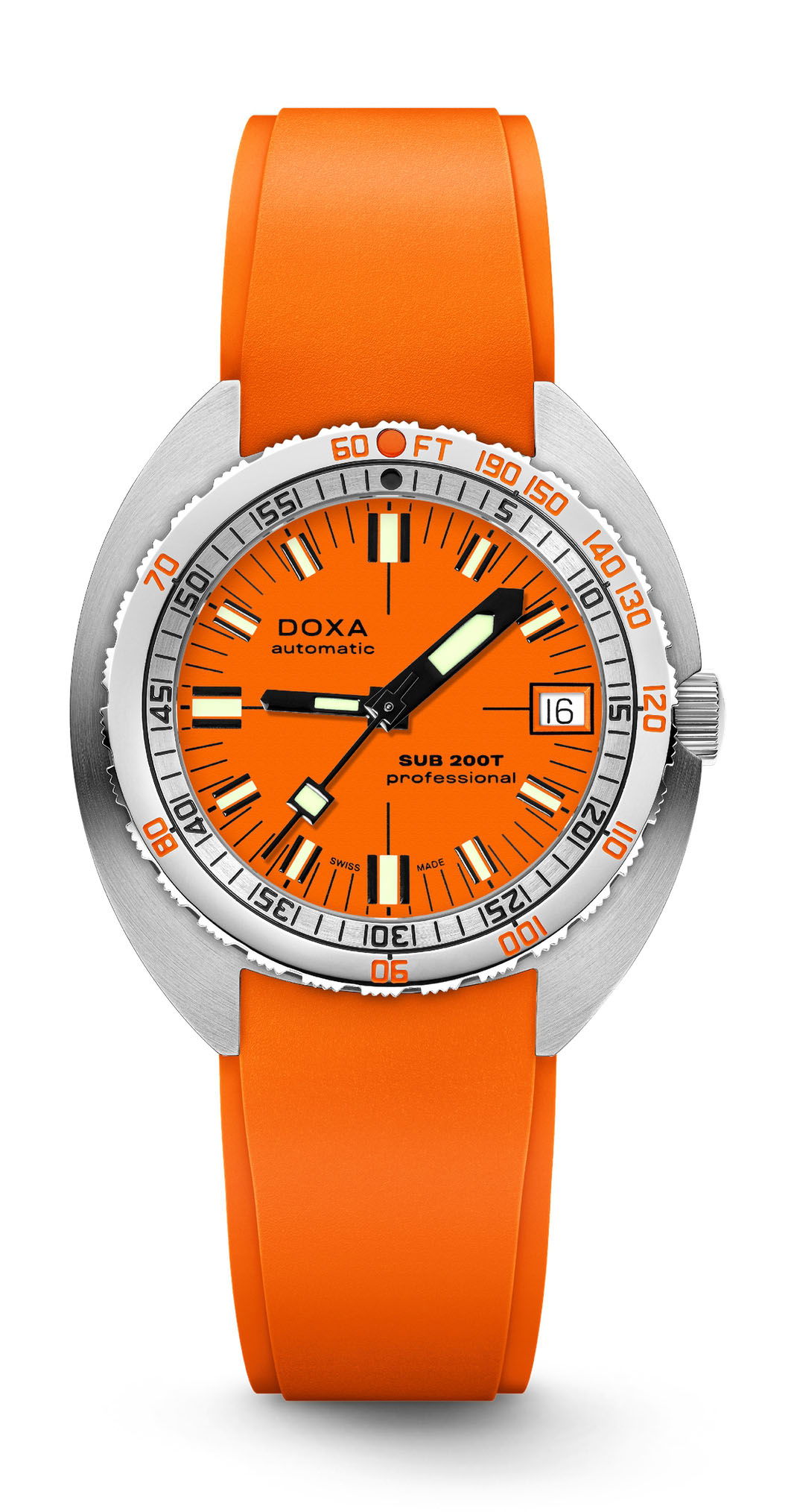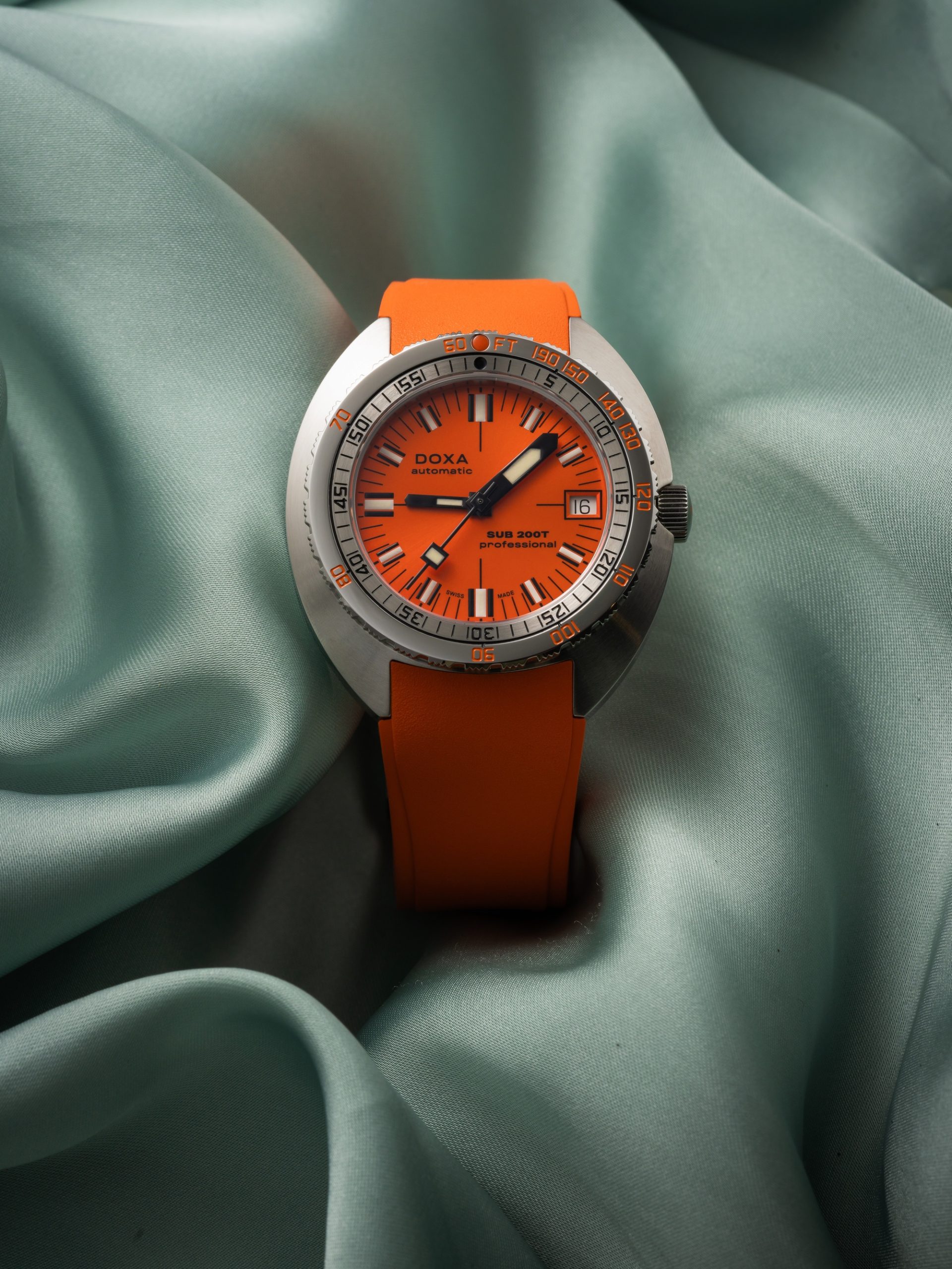 The DOXA SUB 200T marks a significant addition to the brand’s lineup, offering a diverse range of options. It features eight vibrant colors, two dial options (iconic or sunray), and a choice between a rubber strap or stainless steel ‘beads of rice’ bracelet. Notably, it introduces a smaller 39 mm stainless steel case, catering to the growing demand for compact diving watches while maintaining the technical excellence synonymous with DOXA since 1967.